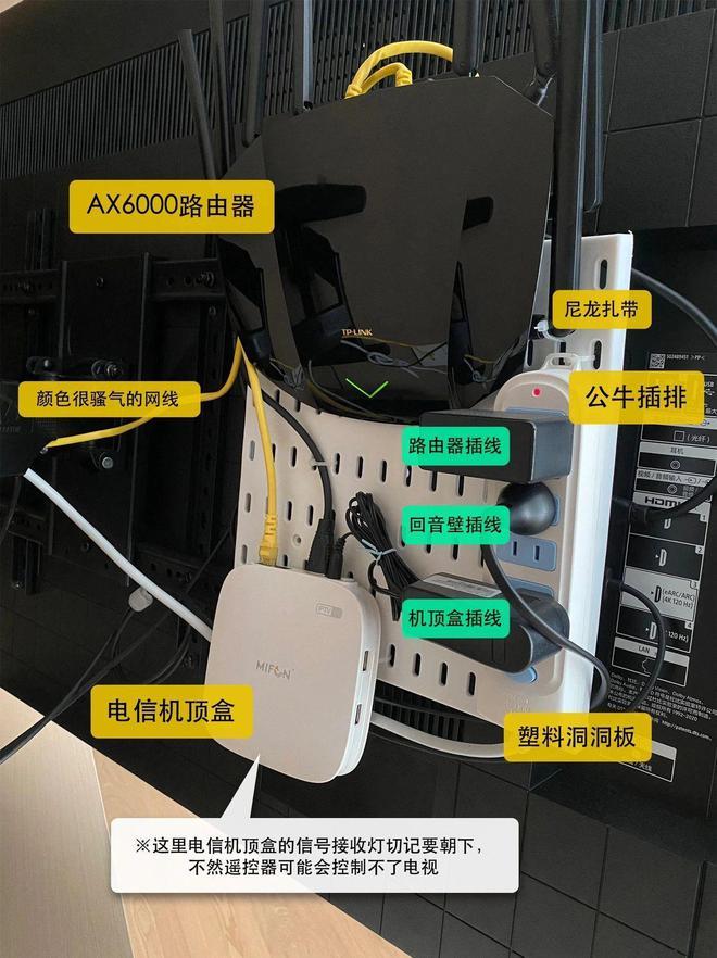1、隐藏在电视机后面:电视机一般是壁挂式设计,插座隐藏在电视机后面,电线、插座被电视机挡住,比较美观。路由器、机顶盒可以用洞洞板,挂在电视机的背面,也能达到很好的隐藏效果。