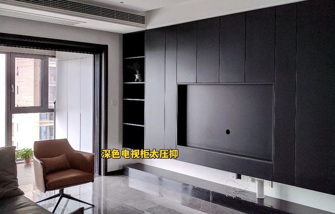 满墙电视柜所占的墙面空间很多,如果颜色选太深的,非常容易导致压抑感,显得客厅空间非常拥挤。