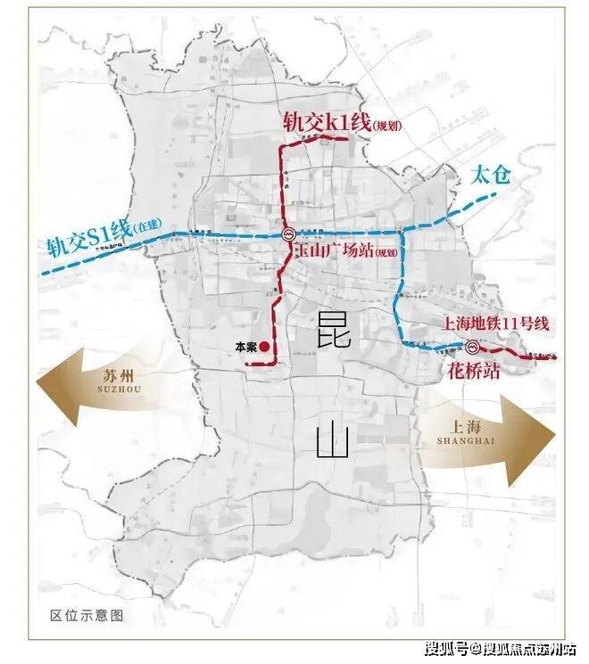2、K1(规划)+S1(在建)快速联动长三角,邻张浦城市主干道亲和路,纵贯昆山南北;